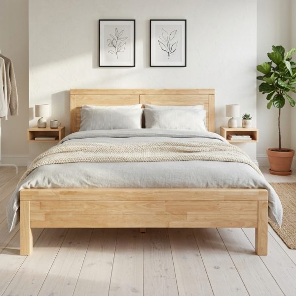 MERANO Full Solid Wood Queen & King Size Bed Frame-Natural
