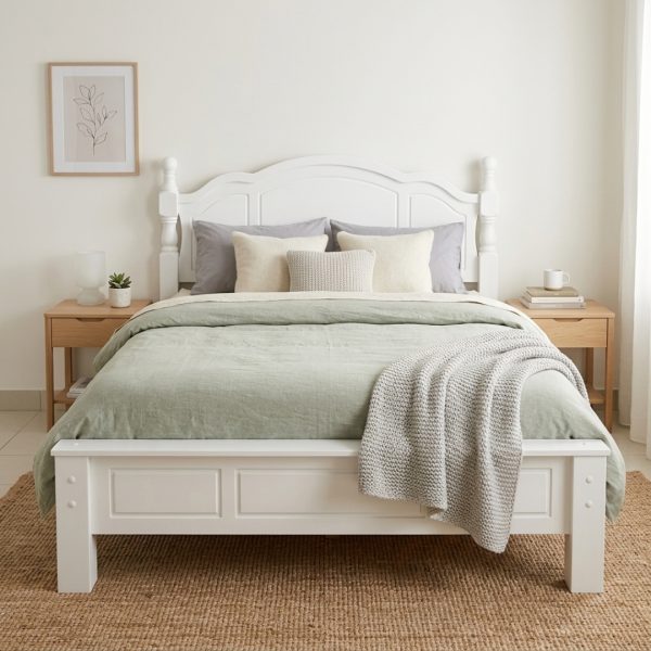 DEVONA Wooden King Size Bed Frame-White