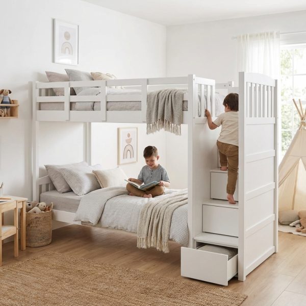 Original price was: RM 3,600.00.RM 2,400.00Current price is: RM 2,400.00.SUNDAE Ladder Trio Bunk Bed With Drawers-Grey