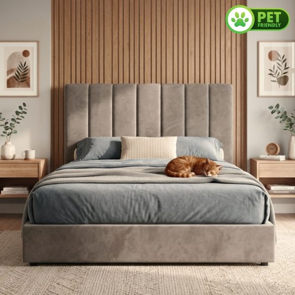 DANTE Queen & King Size Pillow Back Bed Frame-Beige