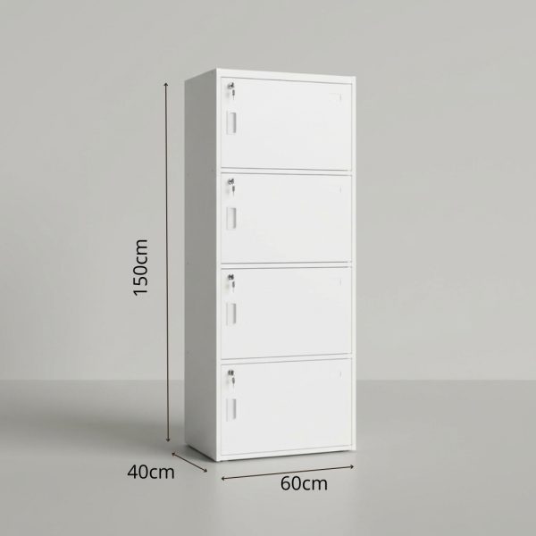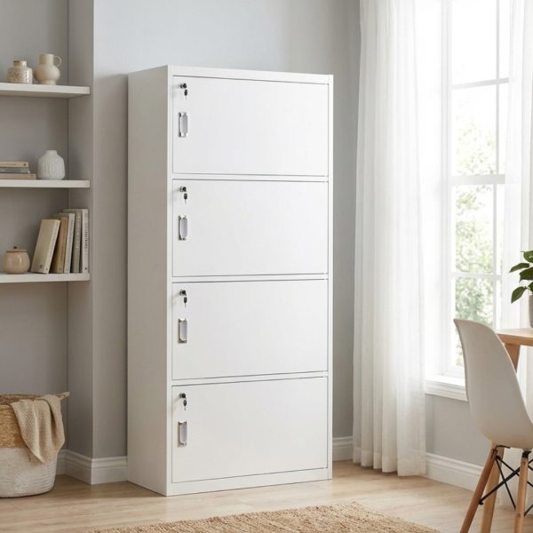 NOBLE 4 Door Storage Cabinet With Key Lock-White