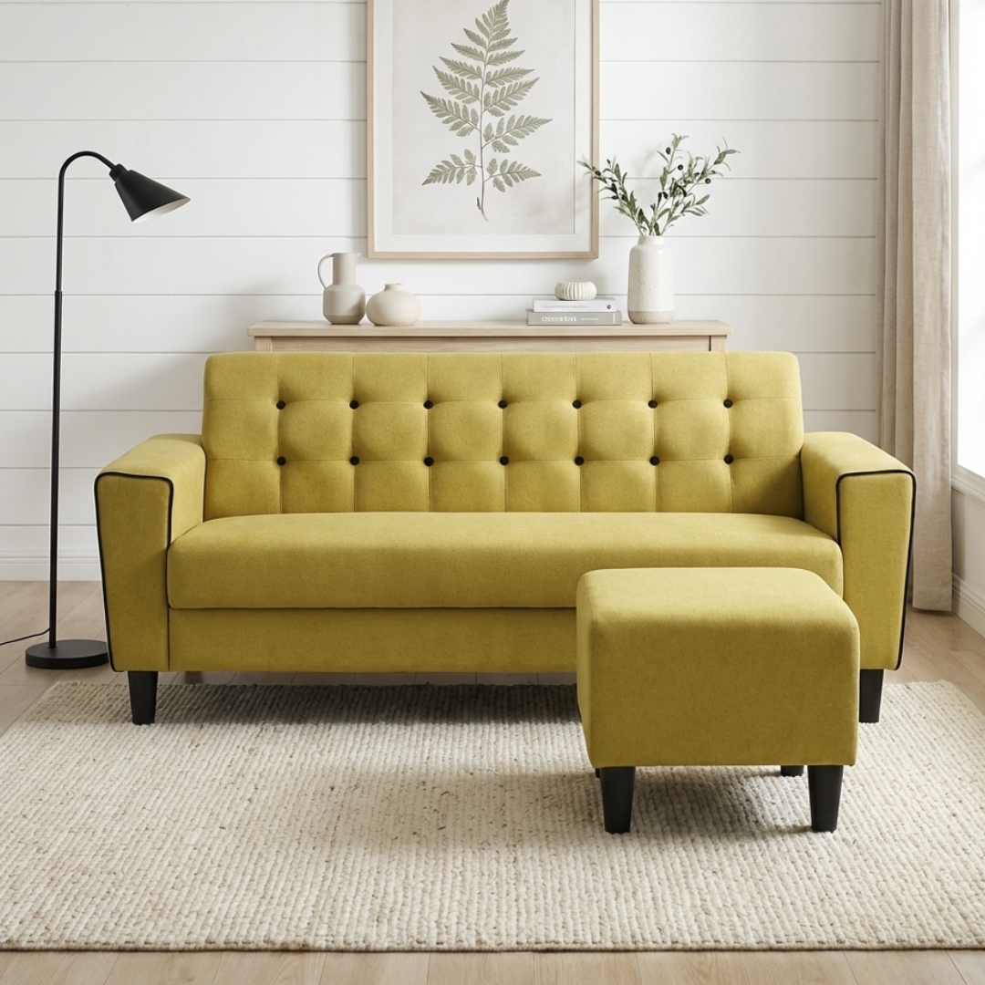 - ALBA 3 Seater Sofa With Stool-Yellow
