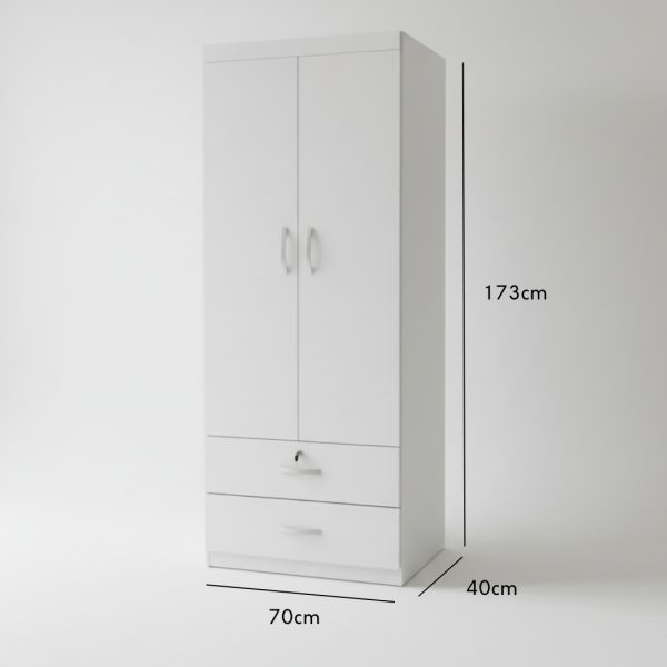LIBERTY 2 Door 2 Drawer Wardrobe With Key Lock-Full white