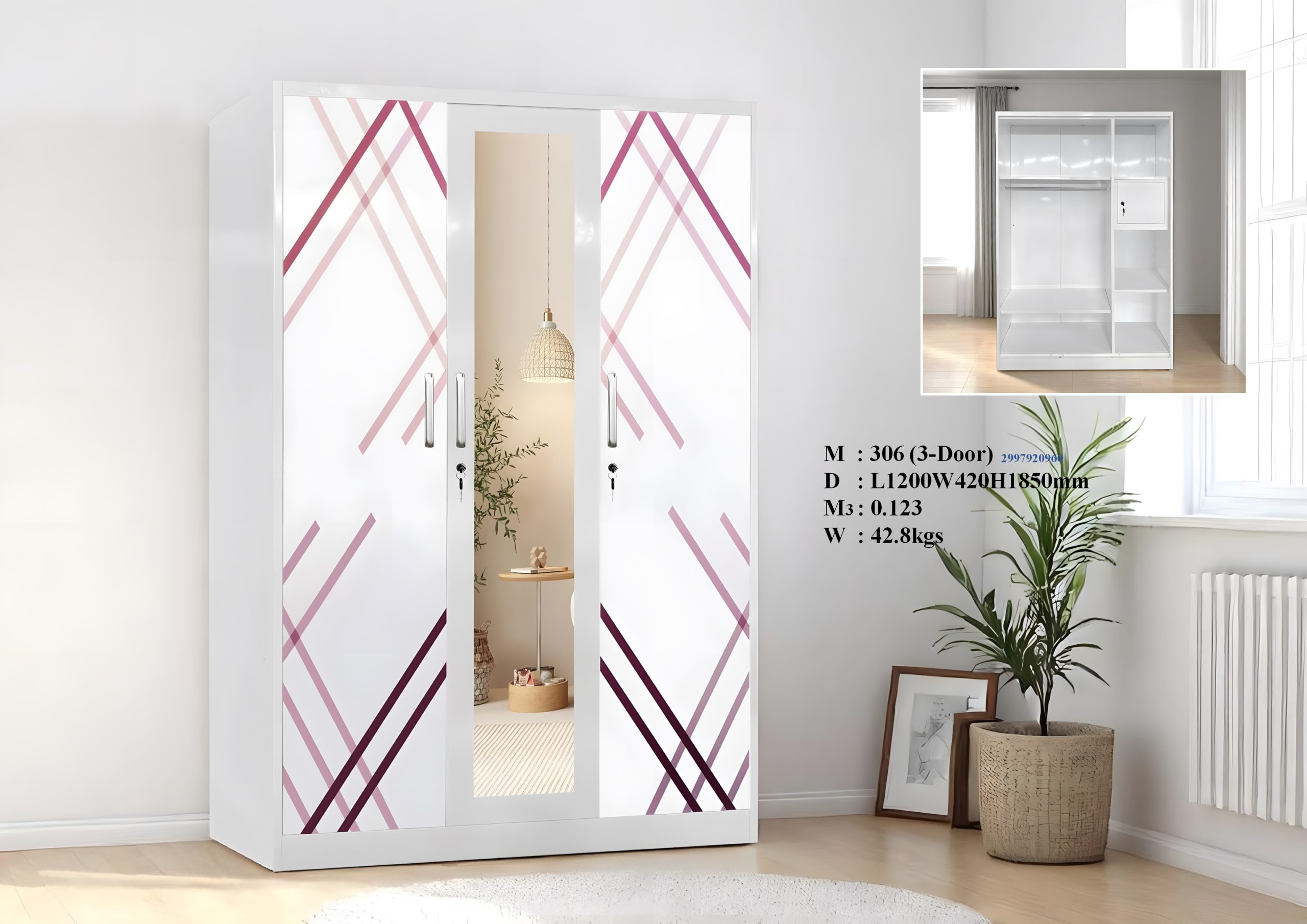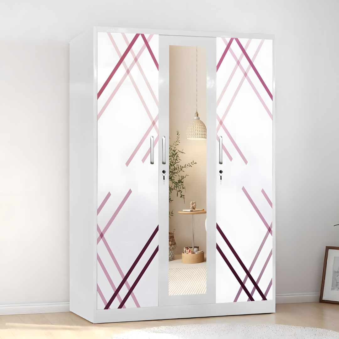 - (3-Door) – Door Metal Cabinet – Door Wardrobe with Mirror – White