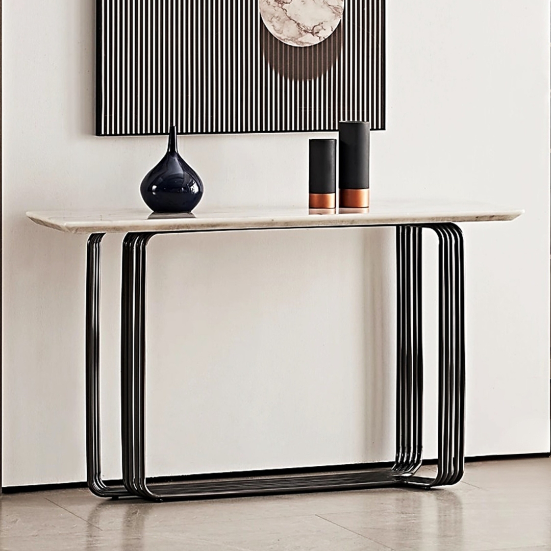 YSANNE Crystal Marble Console Cabinet-Black Chrome