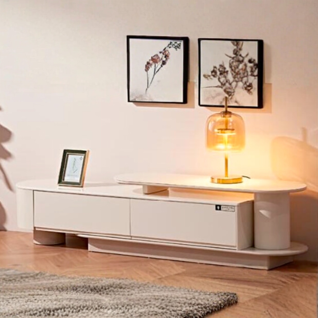 SHAFFER 220-250cm Extendable TV Cabinet – White Beige