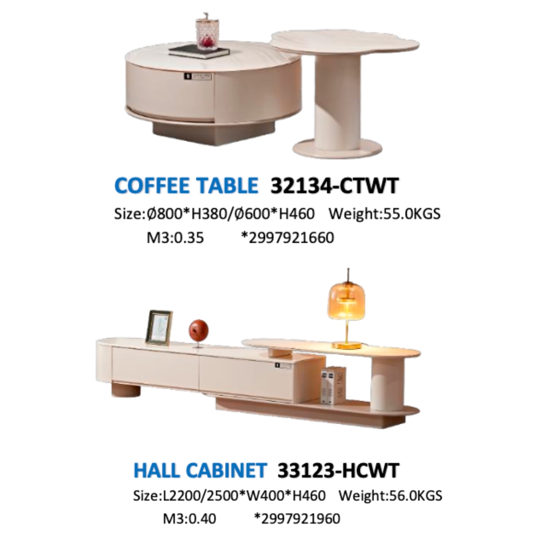 - 33123 220-250cm Extendable TV Cabinet – White Beige