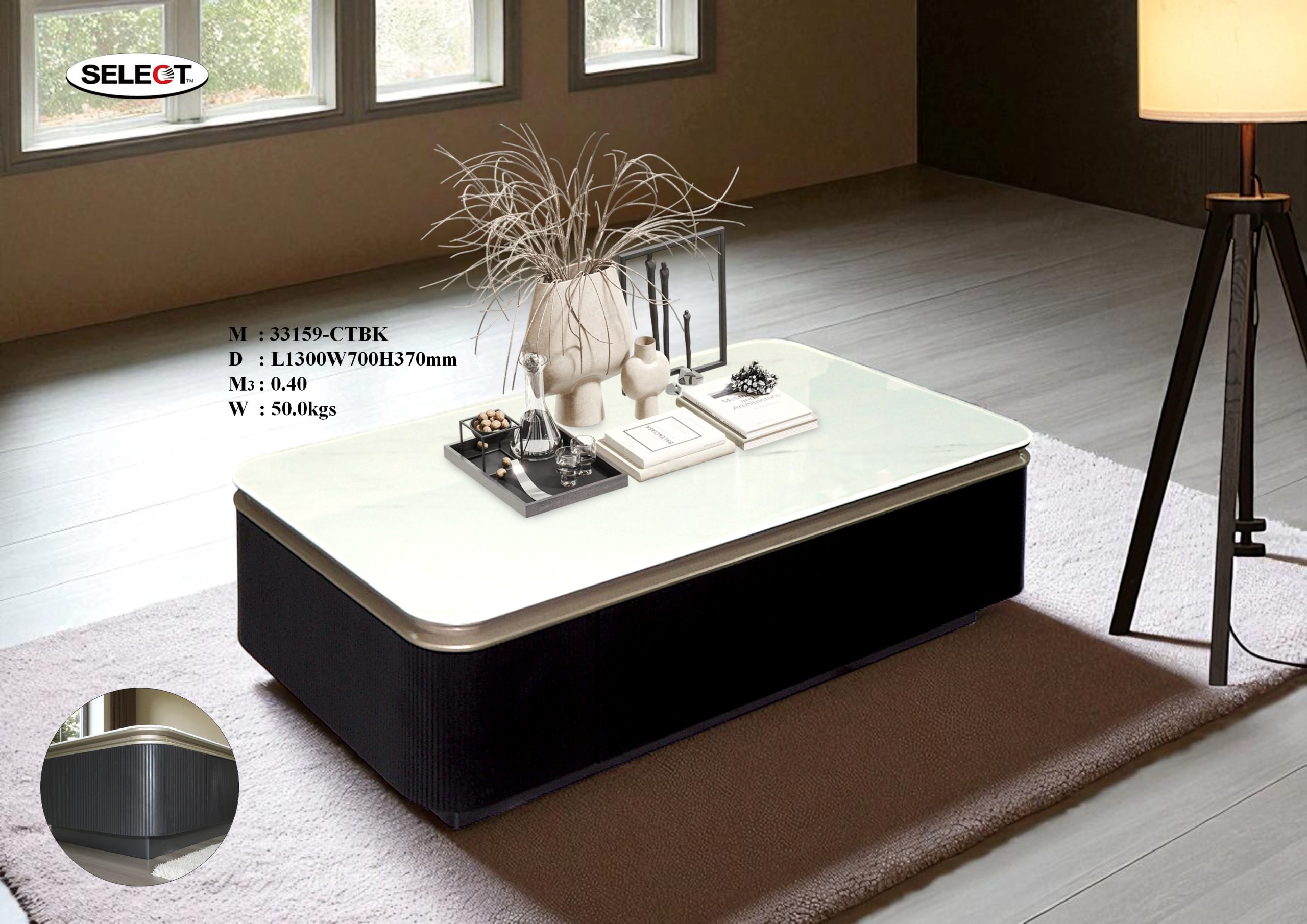 - TORRES 130cm Sintered Stone Coffee Table-Black
