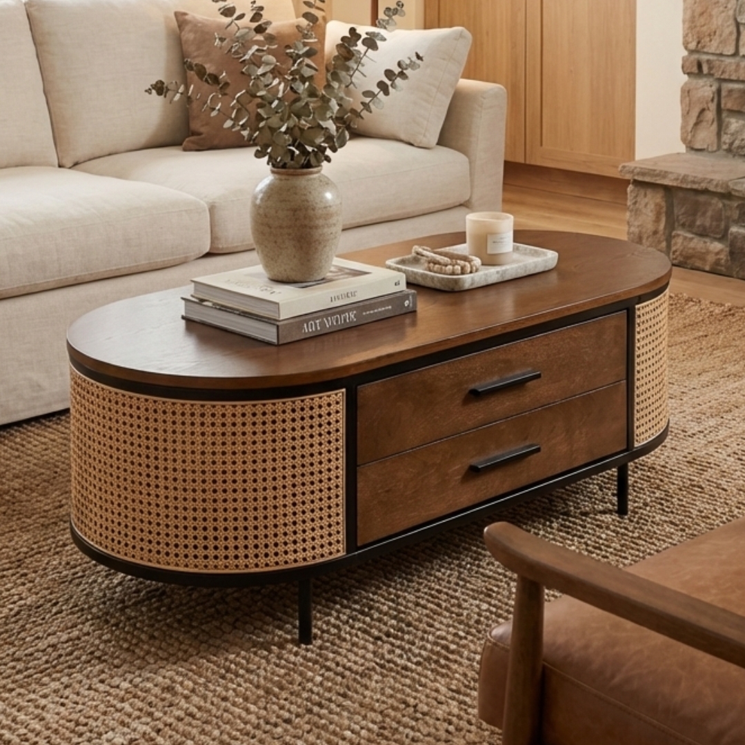 TAPIA 2 Drawers Synthetic Rattan Coffee Table-Walnut
