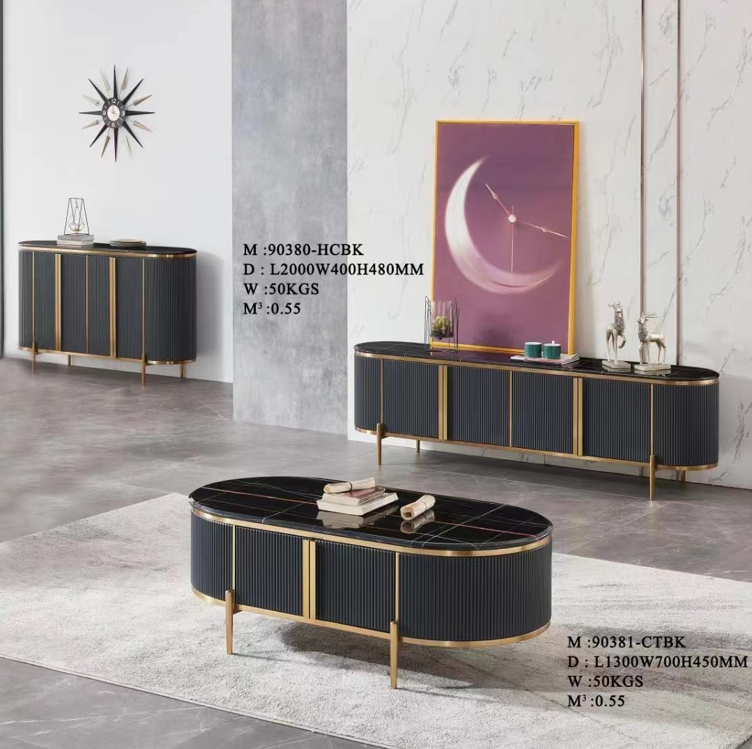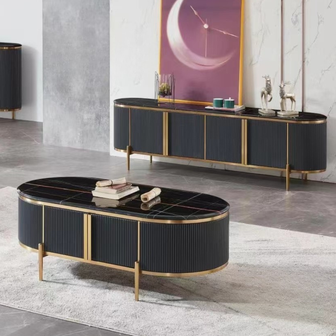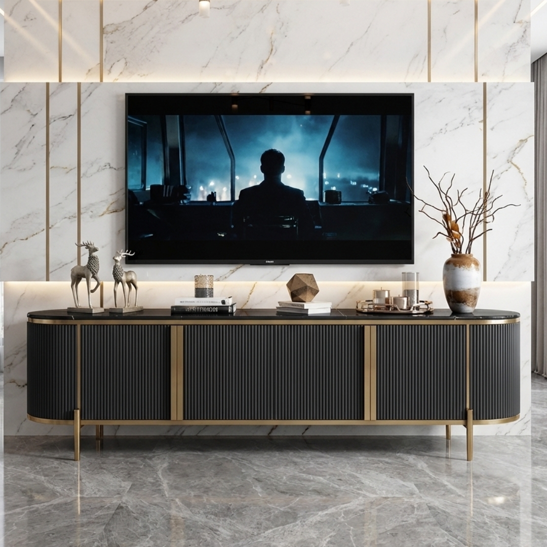 - MARYON 200cm Marble Top With Flutter TV Cabinet-Black