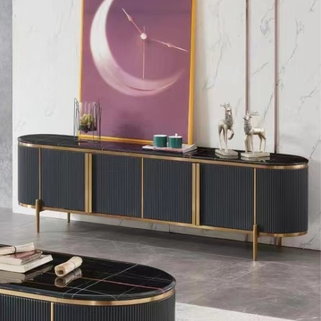MARYON 200cm Marble Top With Flutter TV Cabinet-Black