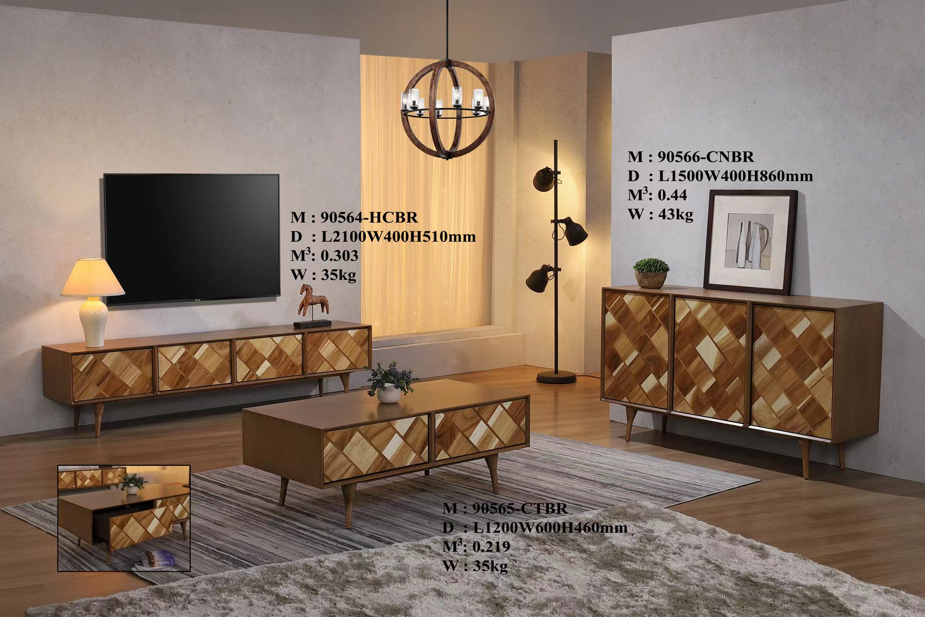 Material Half Soild + HDF, American Walnur Veener, Leg Wood
