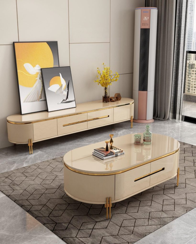 200cm Hall Cabinet – Beige / Gold