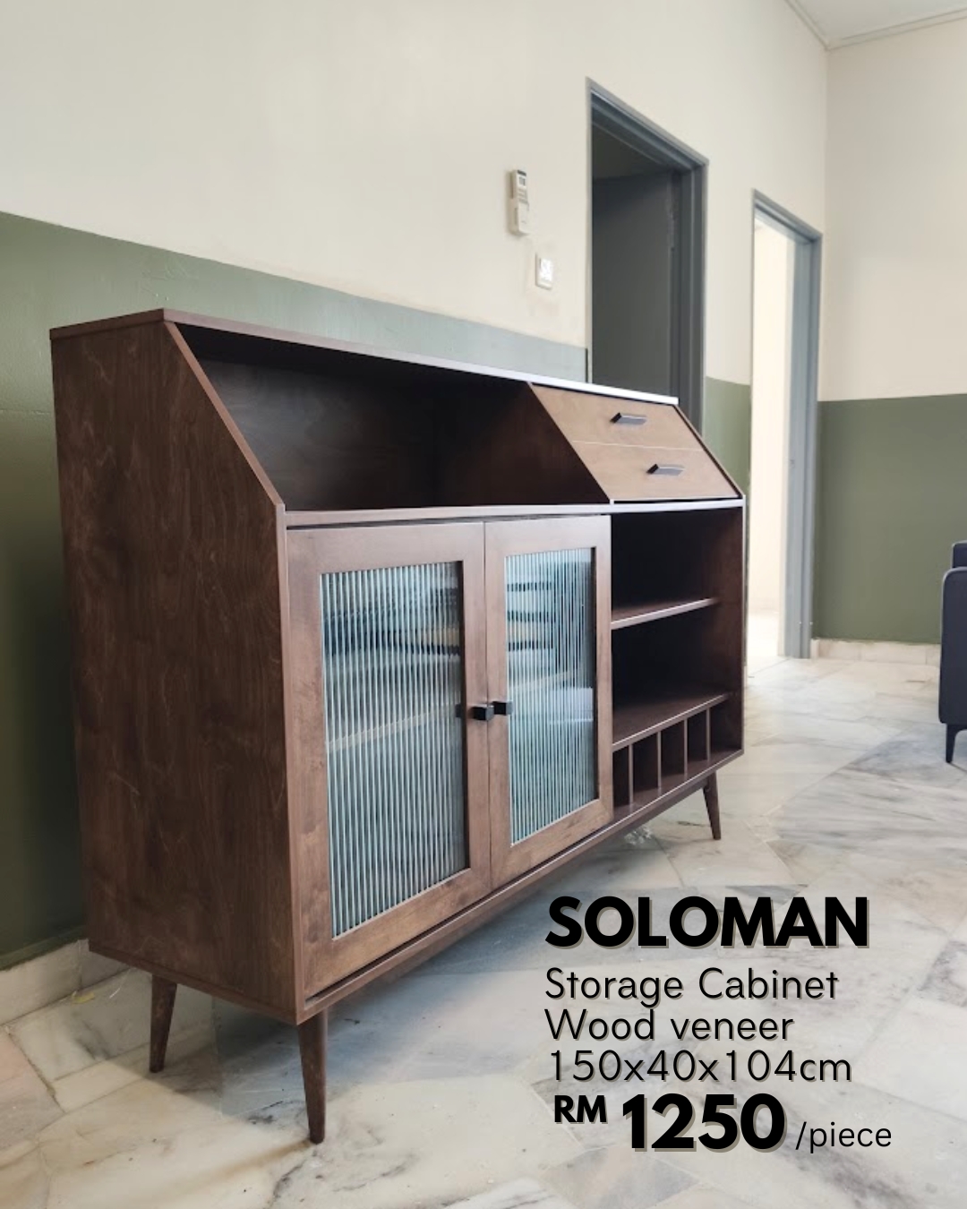 Suntikkan sentuhan gaya vintaj sofistikated dengan Kabinet Simpanan Wain SOLOMAN. Kabinet kayu 120cm ini menampilkan reka bentuk retro yang menawan, sesuai untuk ruang makan atau ruang tamu anda. Ia dilengkapi kompartmen khas untuk penyimpanan wain di samping ruang simpanan yang luas untuk peralatan bar. Pintu kaca privasi yang bergaya membolehkan anda mempamerkan atau menyembunyikan koleksi anda dengan elegan. SOLOMAN ialah gabungan sempurna antara pesona nostalgia dan fungsi hiburan moden.