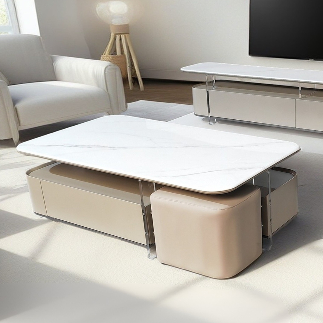 YUKARI 130cm Crystal Marble Coffee Table With Portable Stool