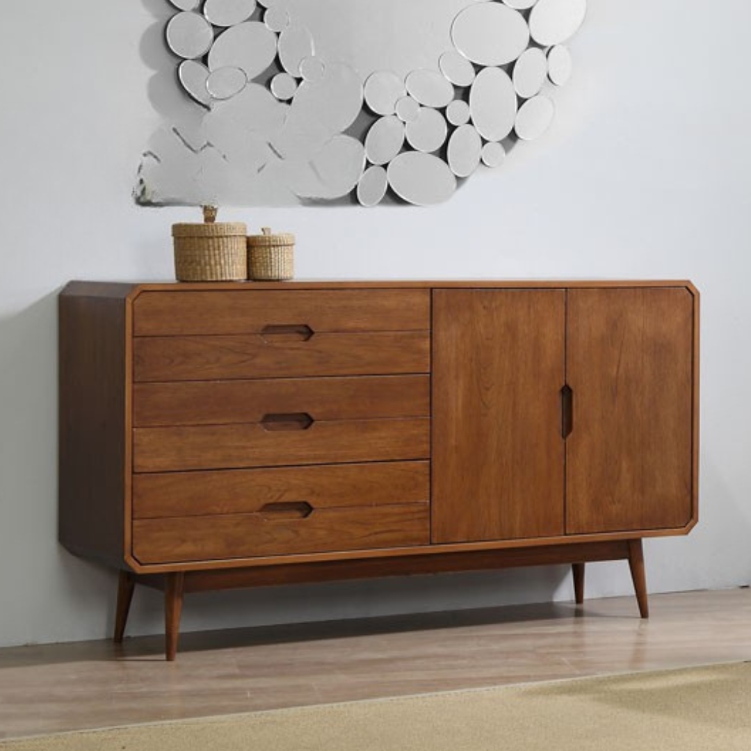 PAGAN 140cm Solid Wood Sideboard-Walnut