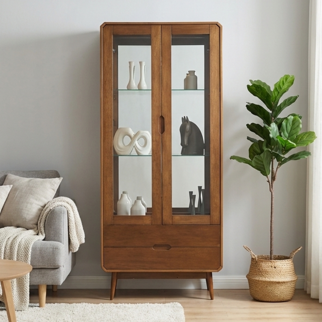 PAGAN 180cm Solid Wood Display Cabinet With Light-Walnut