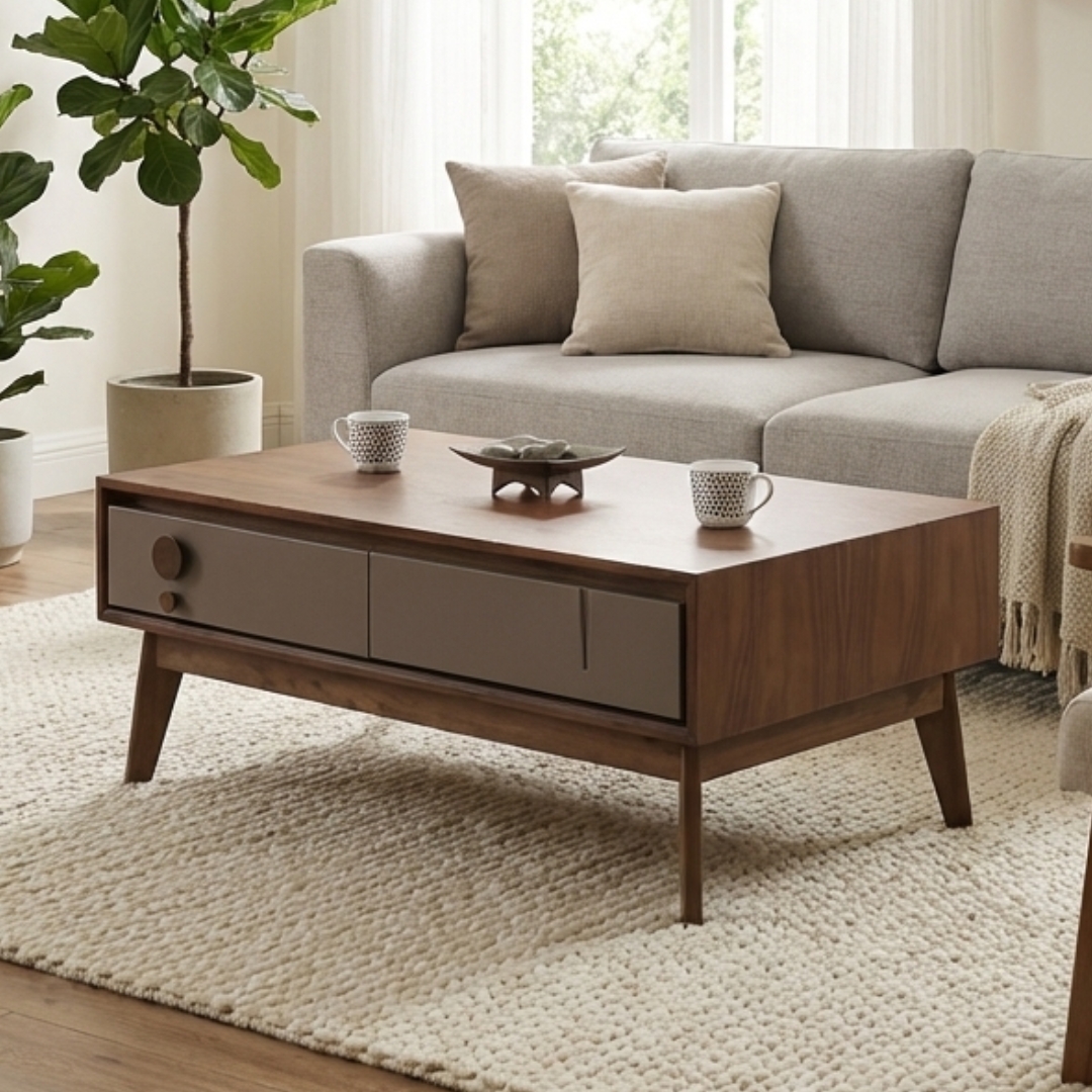 - ASCEND 110cm 2 Drawers Coffee Table-Walnut