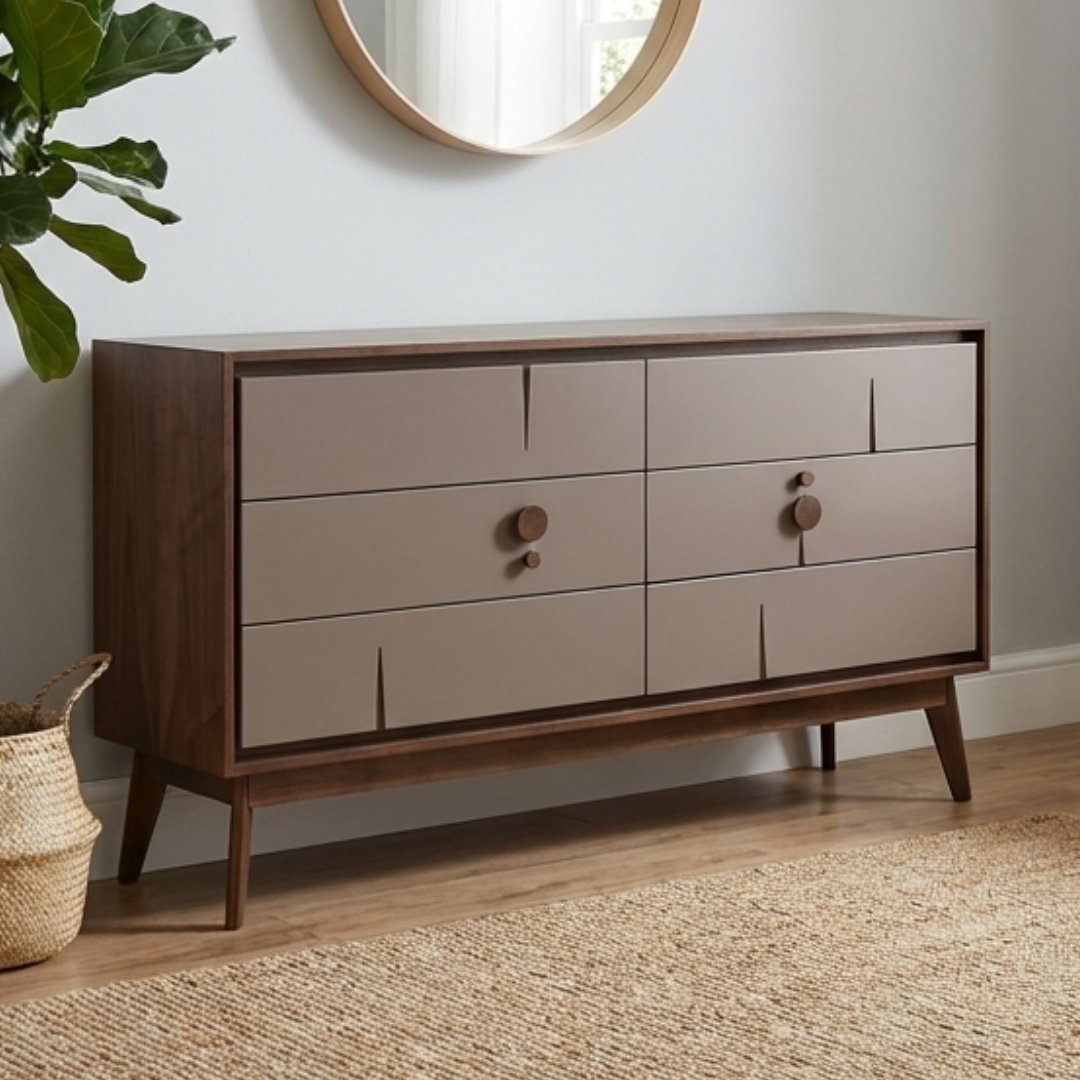 - ASCEND 165cm 6 Drawers Sideboard-Walnut