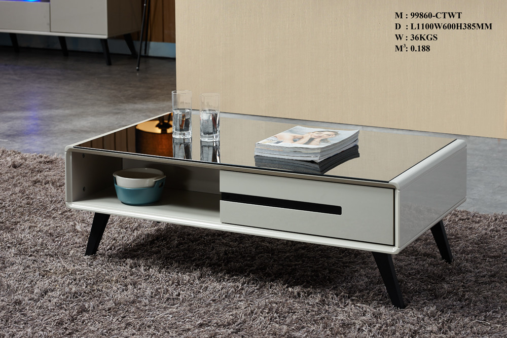 CASSIDY 110cm High Gloss Glass Top Coffee Table