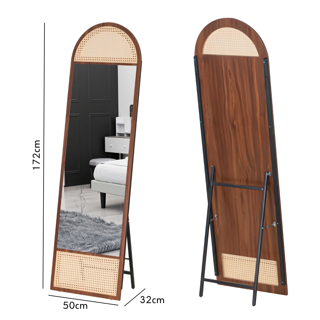 Infuse your space with organic elegance with the ALCOTT Rattan Standing Mirror. Standing at a grand 172cm height, this full-length mirror is designed to bring both light and a sense of space to your room. It features a robust metal frame beautifully accented with natural rattan features, blending industrial durability with a warm, bohemian touch. Whether placed in a bedroom or a hallway, the ALCOTT mirror serves as a stunning focal piece that complements modern, Japandi, or tropical interior styles perfectly.
