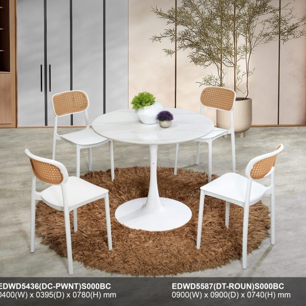 Elevate your dining space with the ALICANTE 4-Seater Dining Set, where modern elegance meets everyday functionality. Featuring a luxurious sintered stone tabletop paired with a sleek metal base, the table offers exceptional durability, heat resistance, and easy maintenance. The set includes white PU cushion seat chairs, providing a soft and stylish seating experience. Perfect for small families or contemporary spaces, the ALICANTE set adds a clean, sophisticated look to any dining room.