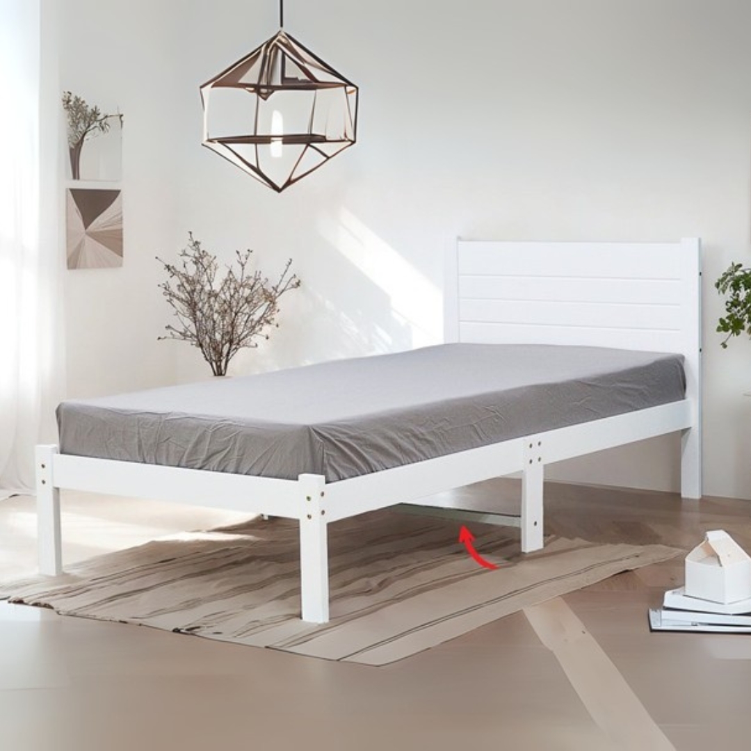 Introducing the ALICE kids single bed, crafted from solid rubberwood for durability. This charming bed features a white frame with natural color bed posts, creating a delightful color combination. Perfect for children’s bedrooms, it offers both style and sturdiness. Let your child sleep in comfort and style with the ALICE kids single bed, where quality meets playful design.