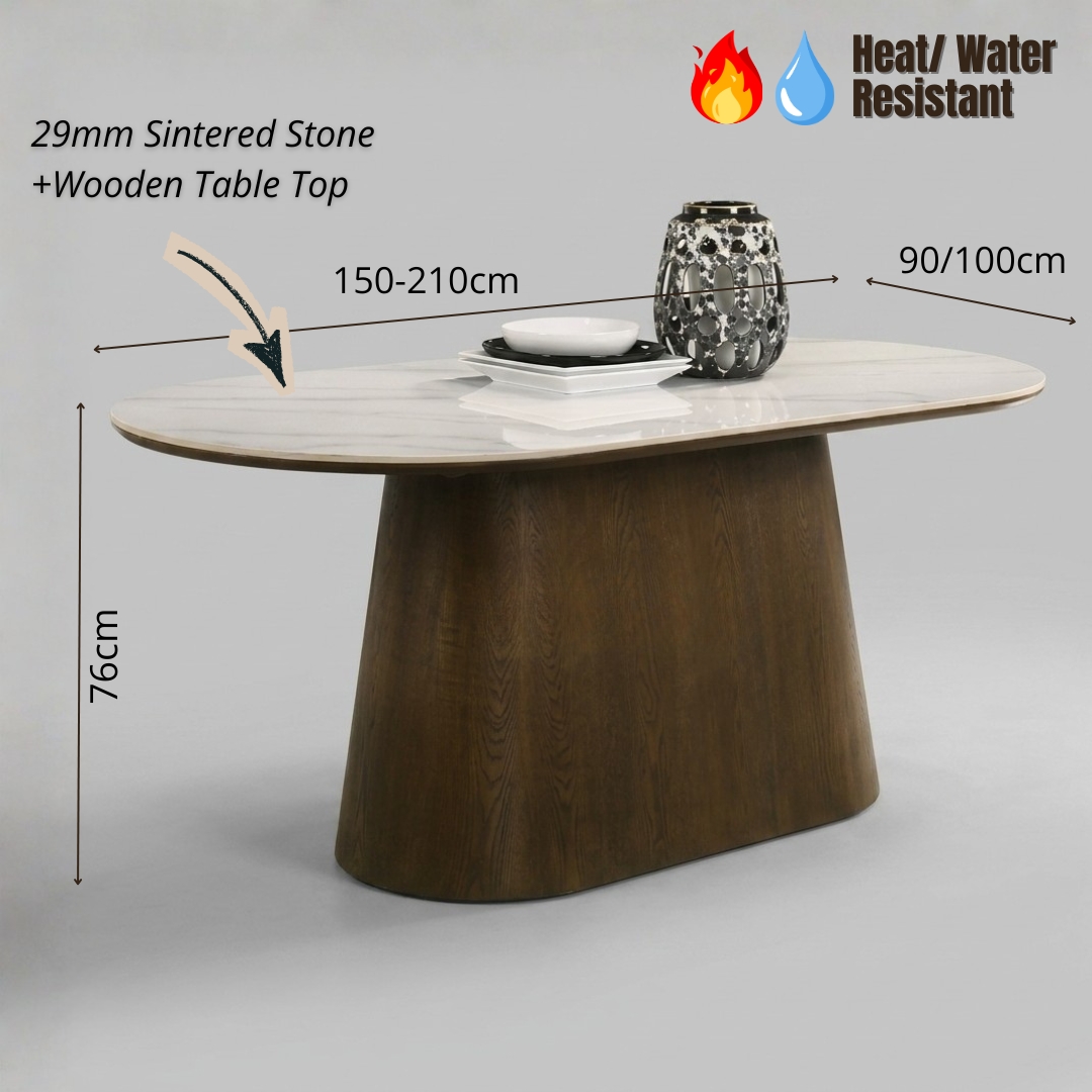 - AMATA 150-210cm Oval Shaped Sintered Stone Dining Table-Walnut