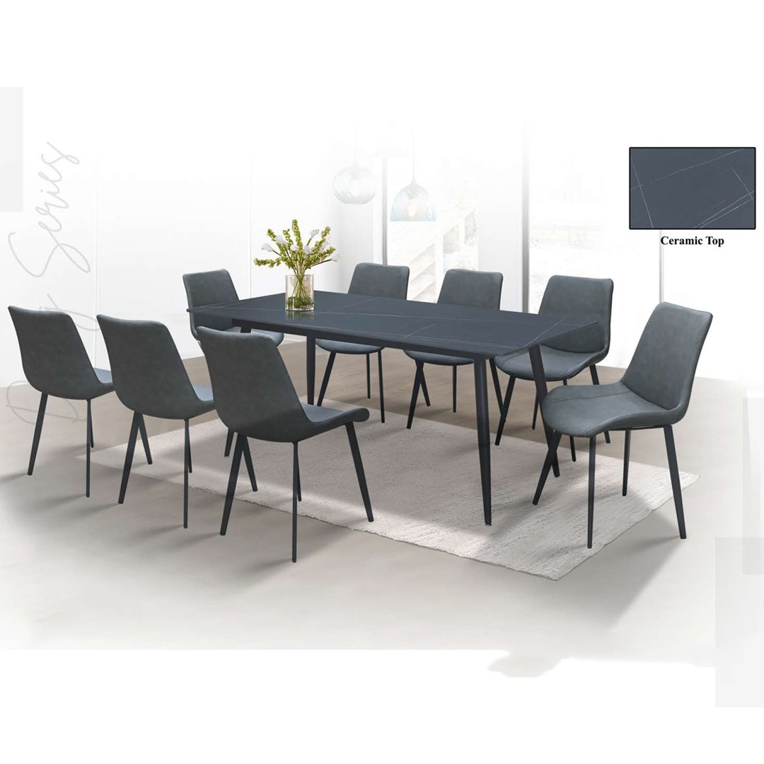 ANISA 8 Seater Ceramic Top Dining Set-Black Top Grey Chair