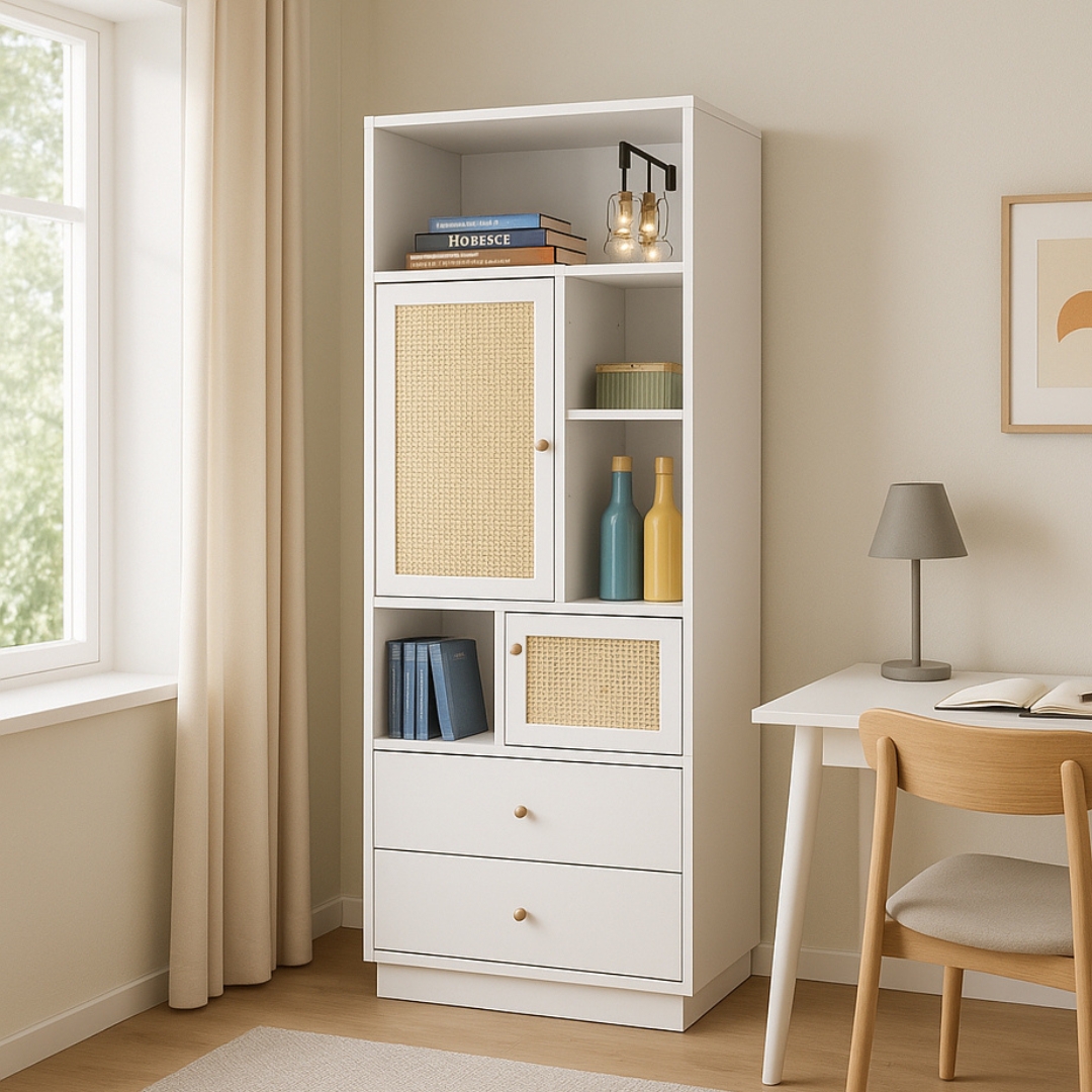 - ANTHEA High Rattan Door Filling Cabinet-White