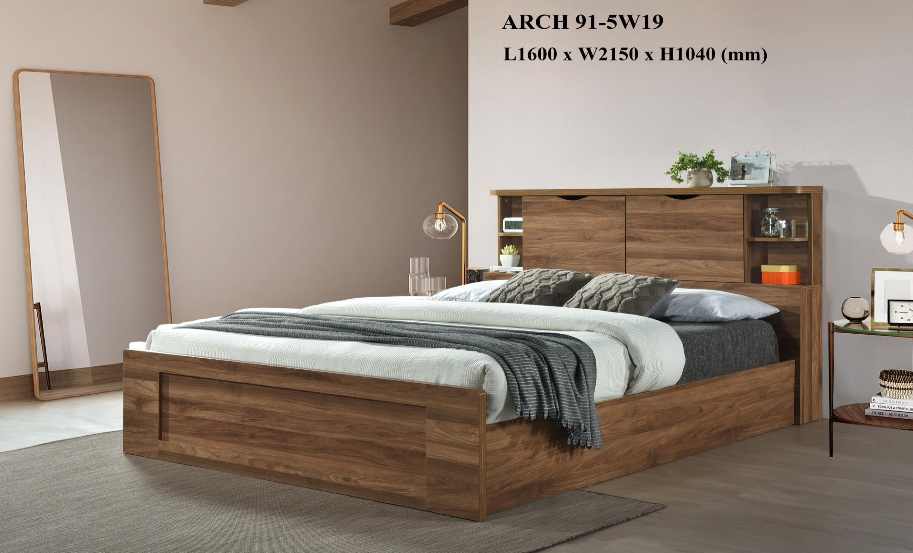 - ARCH Queen Size Storage Bed Frame-Walnut