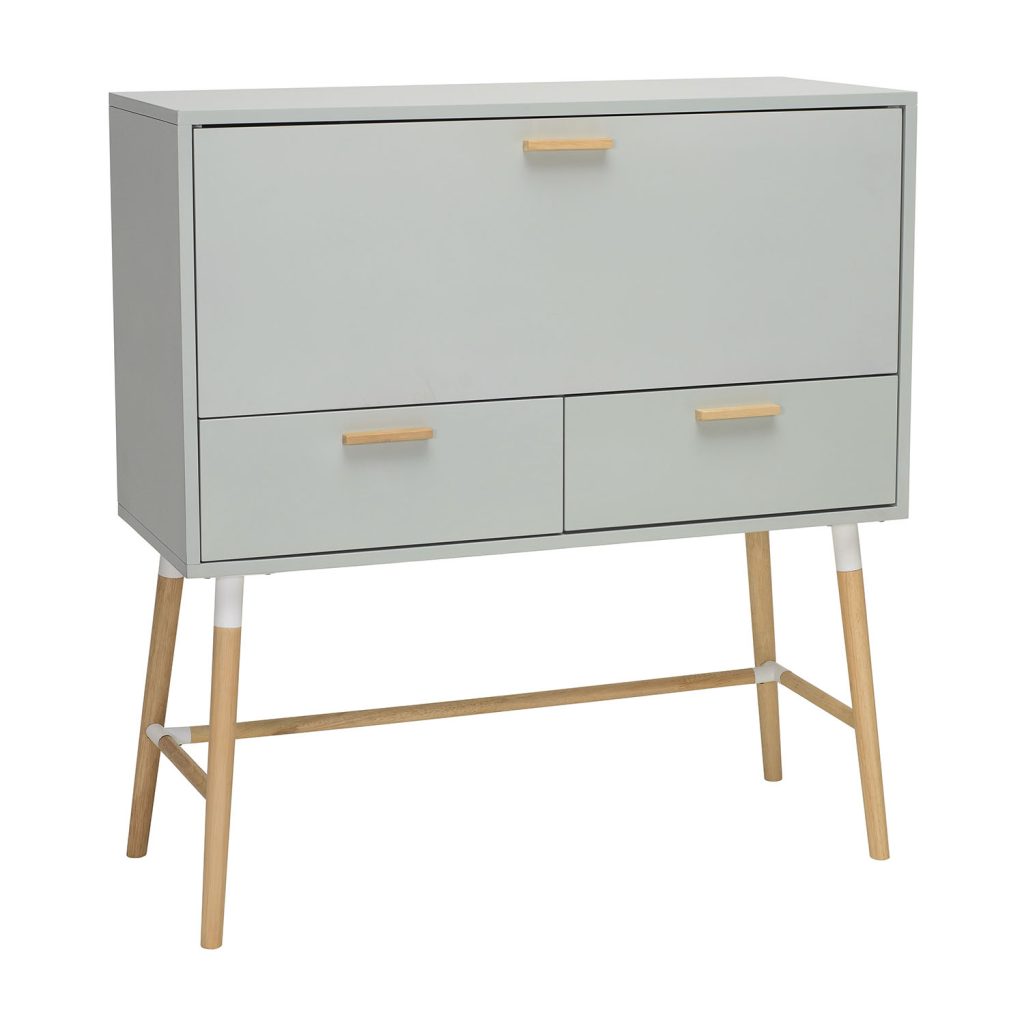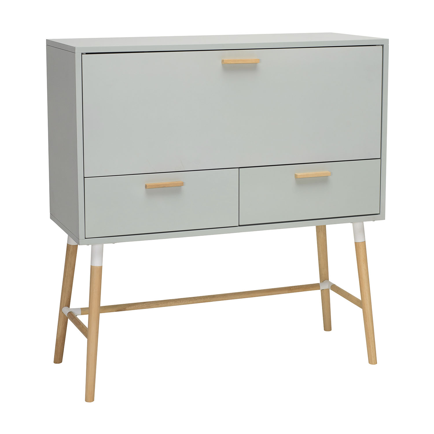 Arod Cabinet Desk in White Grey body with Oak colour leg and handle, with Matt White Epoxy metal tube
