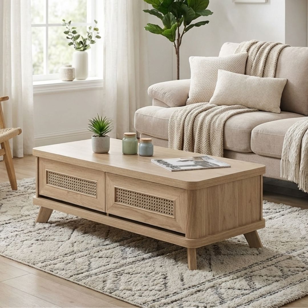 ORICIA 120cm 2 Drawers Coffee Table-Oak