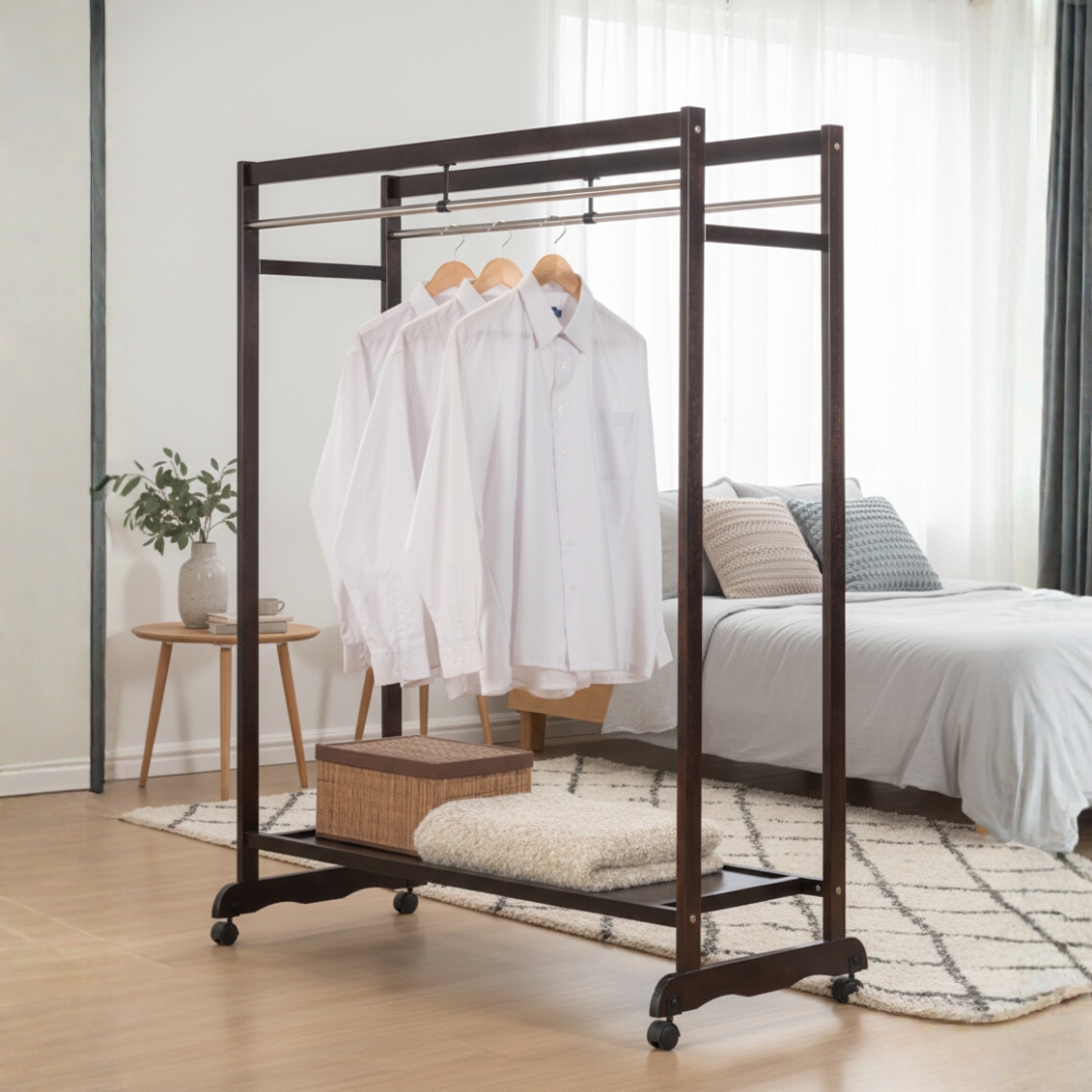 ATSUTA 120cm Solid Wood Garment Rack-Cappuccino