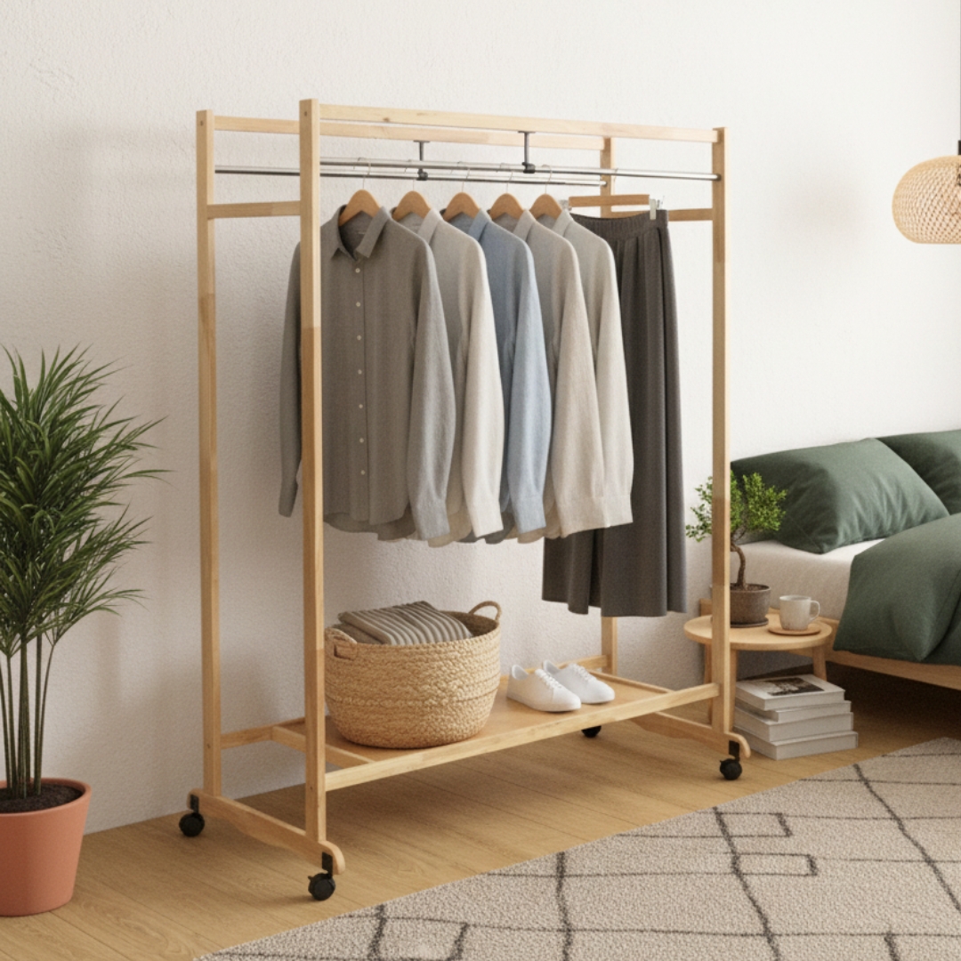 ATSUTA 120cm Solid Wood Garment Rack-Natural