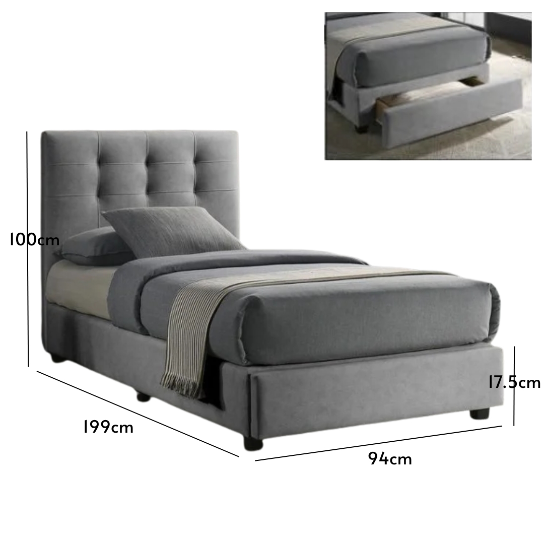 BACTON Pet Friendly Single Size Drawer Storage Bed-Grey