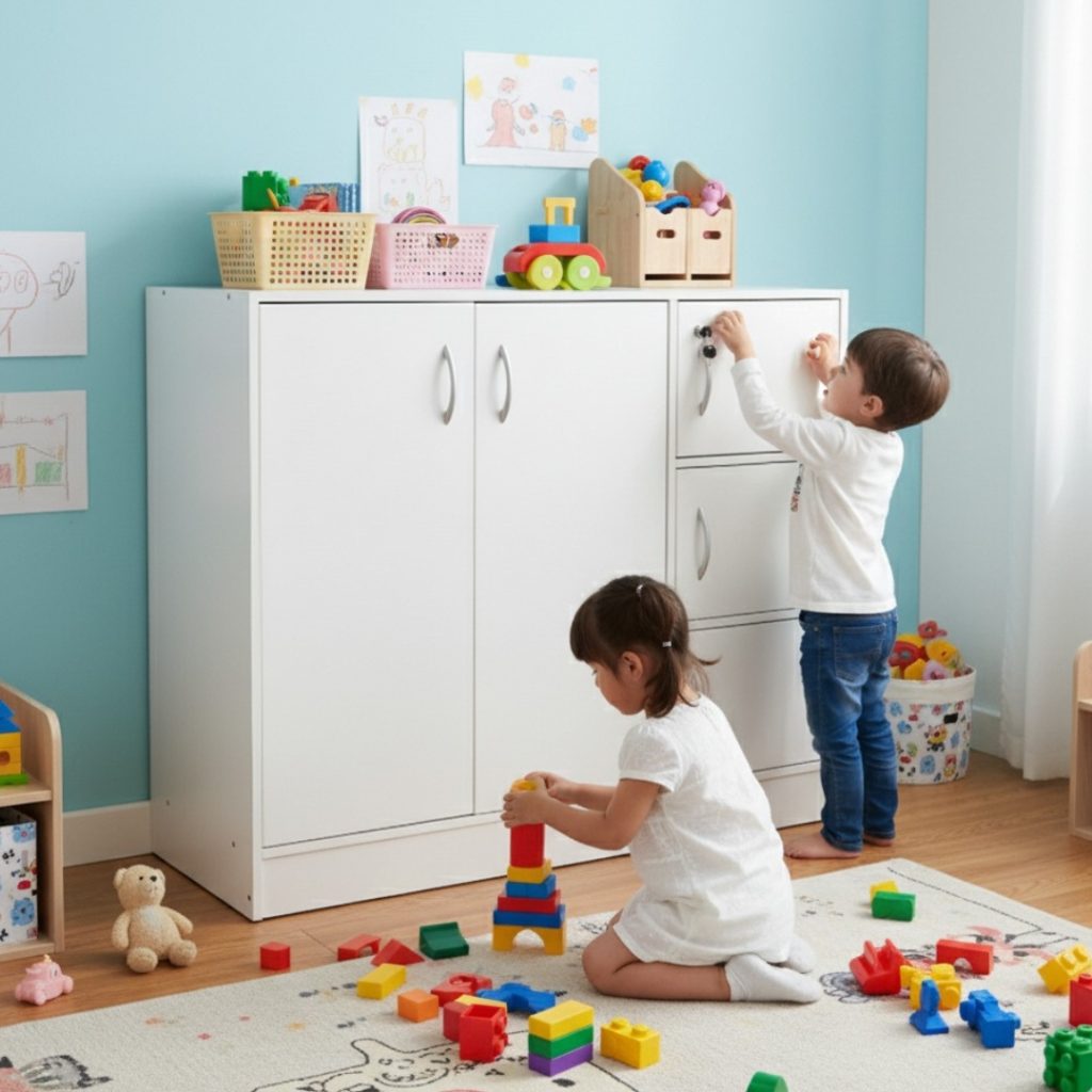 BARRY 5 Doors Children Wardrobe Without Key Lock – White