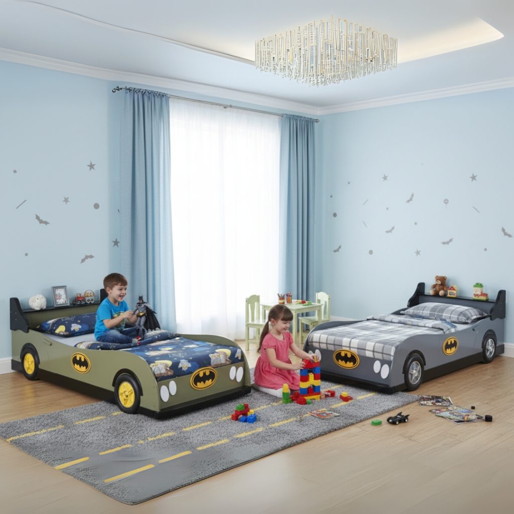Turn bedtime into an adventure with the Batman Car Shaped Kids Bed! Designed to fit a standard single mattress, this bed combines playful style with sturdy construction. Available in Grey and Green colors, it’s the perfect centerpiece to bring excitement and imagination into your child’s room.
