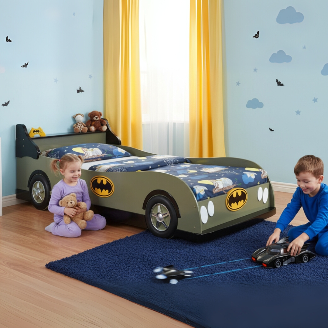 Turn bedtime into an adventure with the Batman Car Shaped Kids Bed! Designed to fit a standard single mattress, this bed combines playful style with sturdy construction. Available in Grey and Green colors, it’s the perfect centerpiece to bring excitement and imagination into your child’s room.