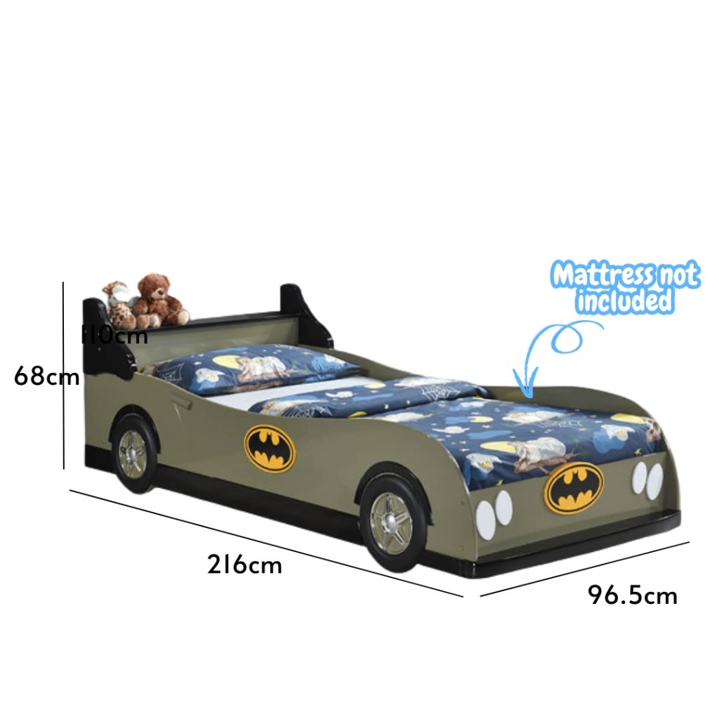 Jadikan waktu tidur lebih menyeronokkan dengan Katil Kanak-kanak Bentuk Kereta Batman! Direka untuk muat tilam bujang standard, ia kukuh dan bergaya. Tersedia dalam warna Kelabu dan Hijau, katil ini membawa suasana ceria dan imaginasi ke bilik tidur anak anda.