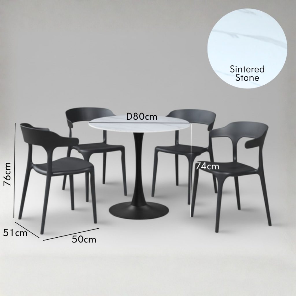 DORIS D79CM 4 Seater Round Dining Set-Black