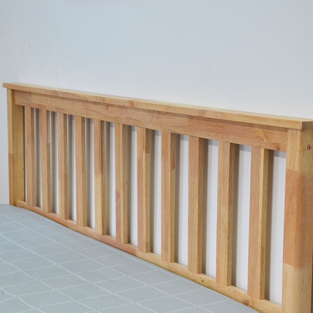 Crafted from full solid rubberwood in a natural Japandi tone, it brings warmth and balance to your bedroom. The 100cm high headboard offers elegant support while enhancing a cozy atmosphere. Available in single and queen size, the BEKKA bedframe is built to last — blending natural charm, fine craftsmanship, and everyday comfort perfectly.