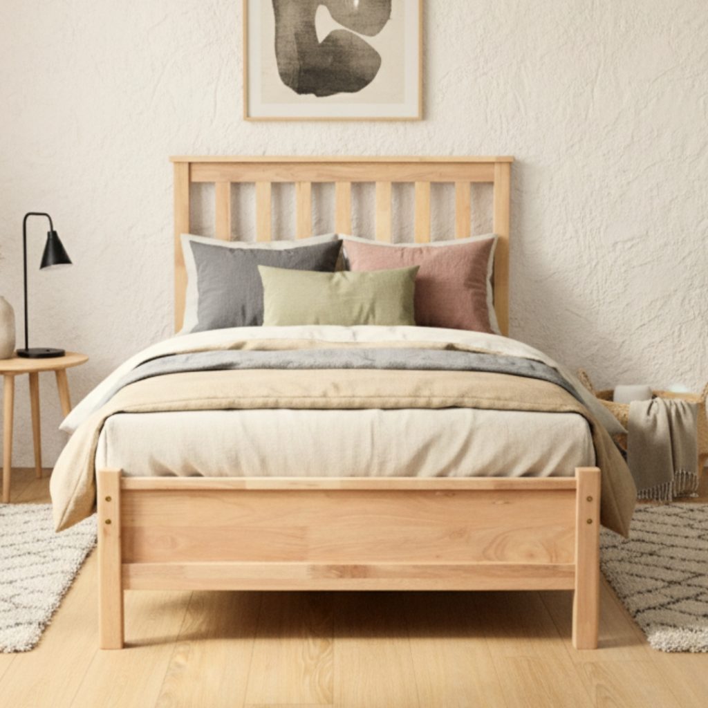 - BEKKA Single Size Wooden Bed Frame-Natural