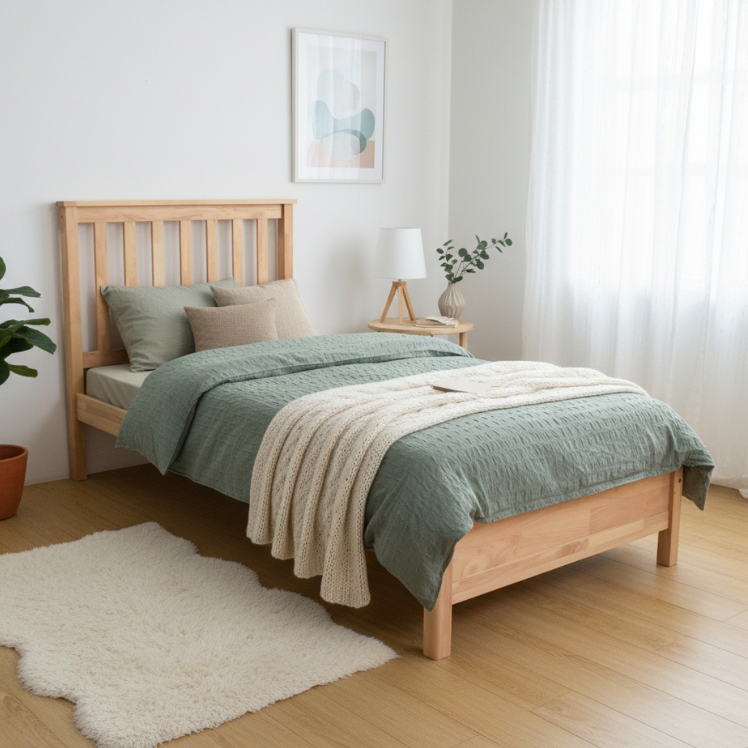 Nikmati keindahan semula jadi dengan Rangka Katil Kayu Padu BEKKA 🍃