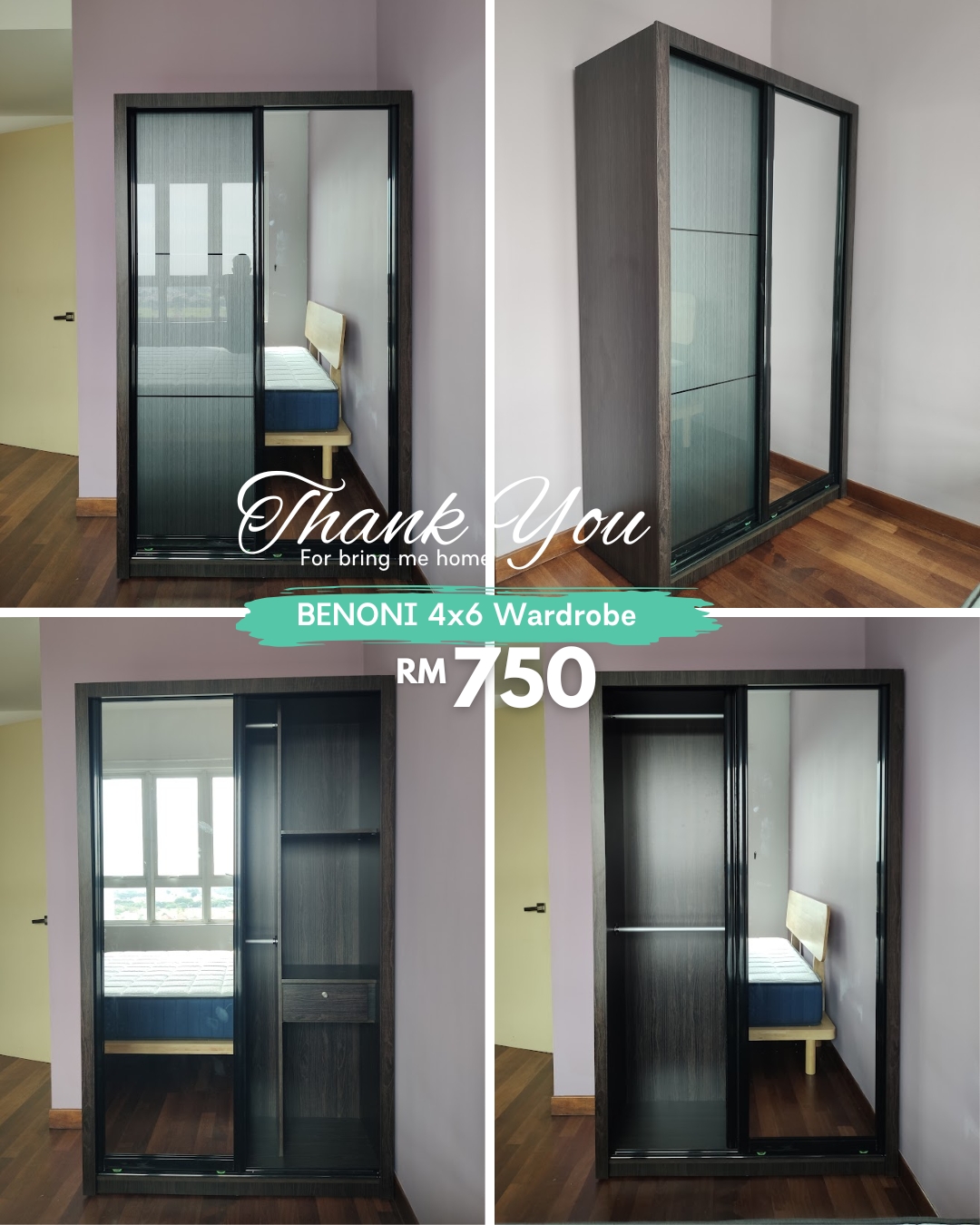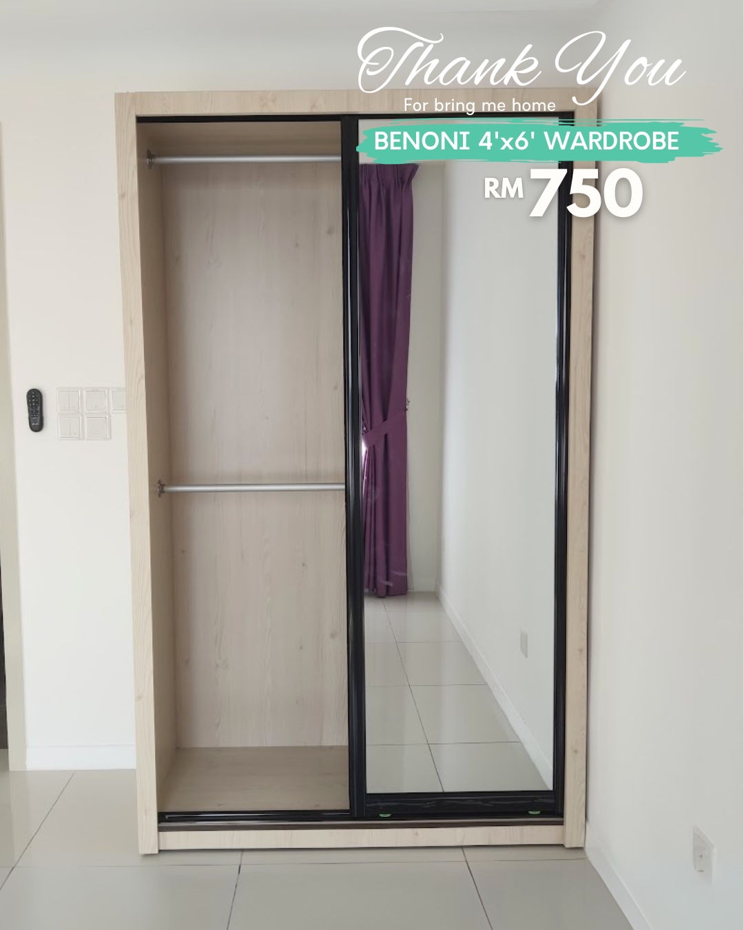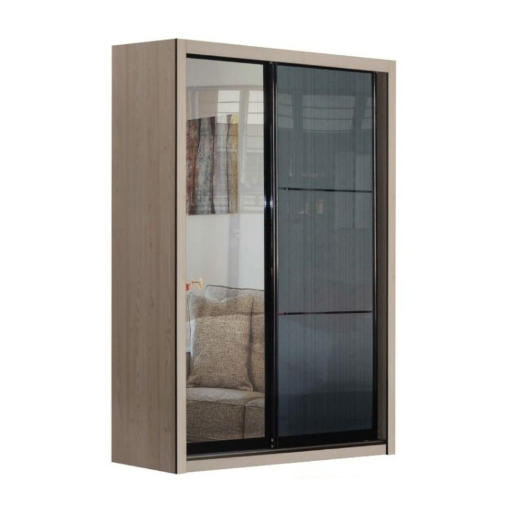 Almari Pintu Gelangsar BENONI 4’x6′ diperbuat daripada papan partikel tahan lama. Panel pintu kelabu berkilat tinggi digabungkan dengan cermin penuh di sebelah, menambah gaya dan fungsi. Bahagian dalam dilengkapi 2 batang penyangkut, 1 laci berkunci dan ruang simpanan yang luas. Tersedia dalam warna white wash atau walnut.