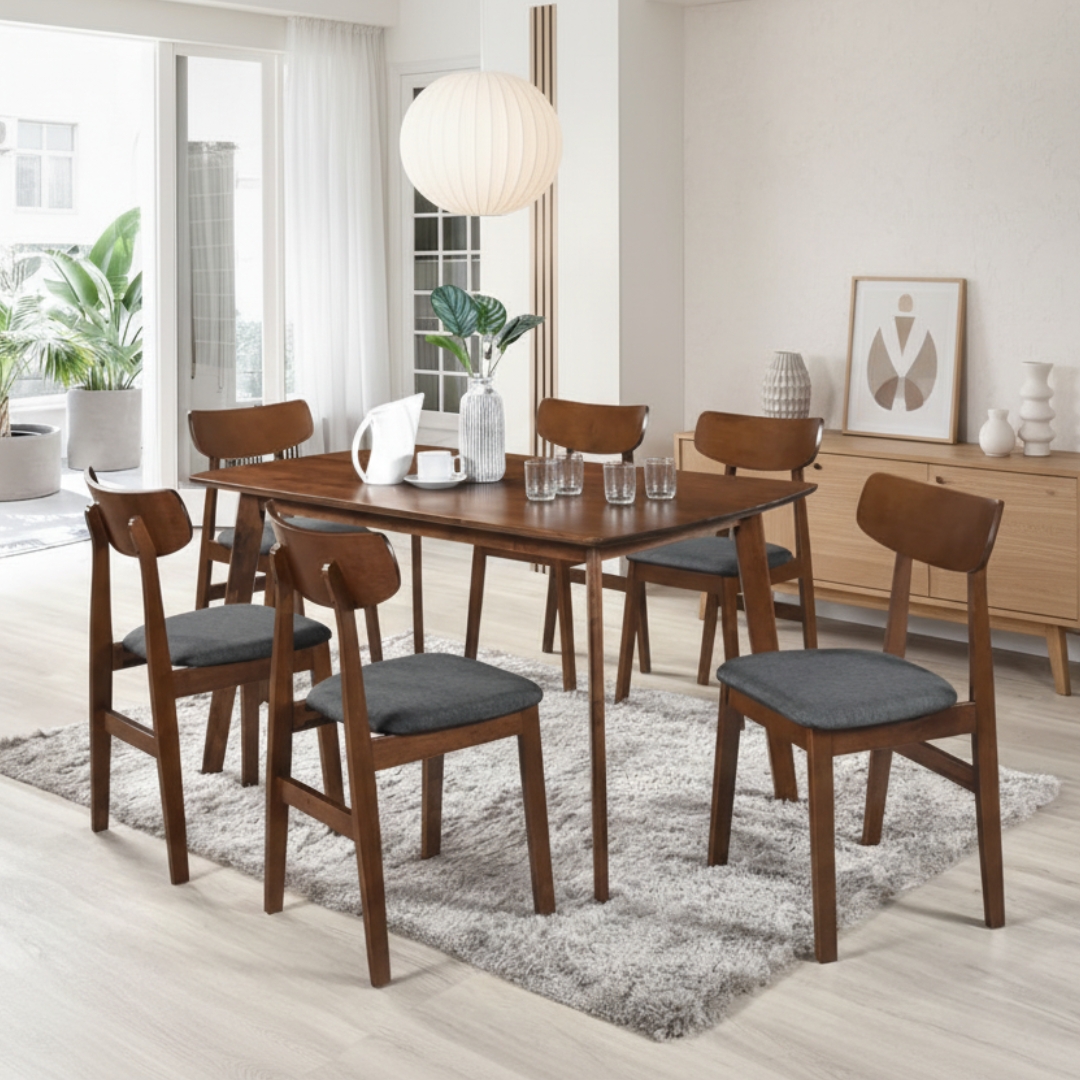 CLARKSON Solid Wood 6 Seater Dining Set-Cocoa