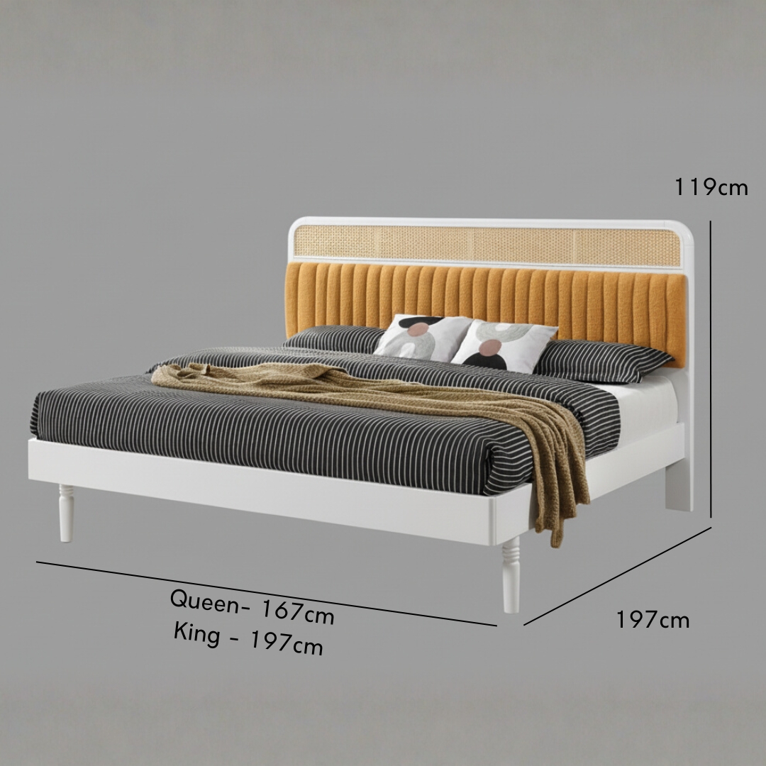 - BONSOIR Queen & King Size French Style Bed Frame-White