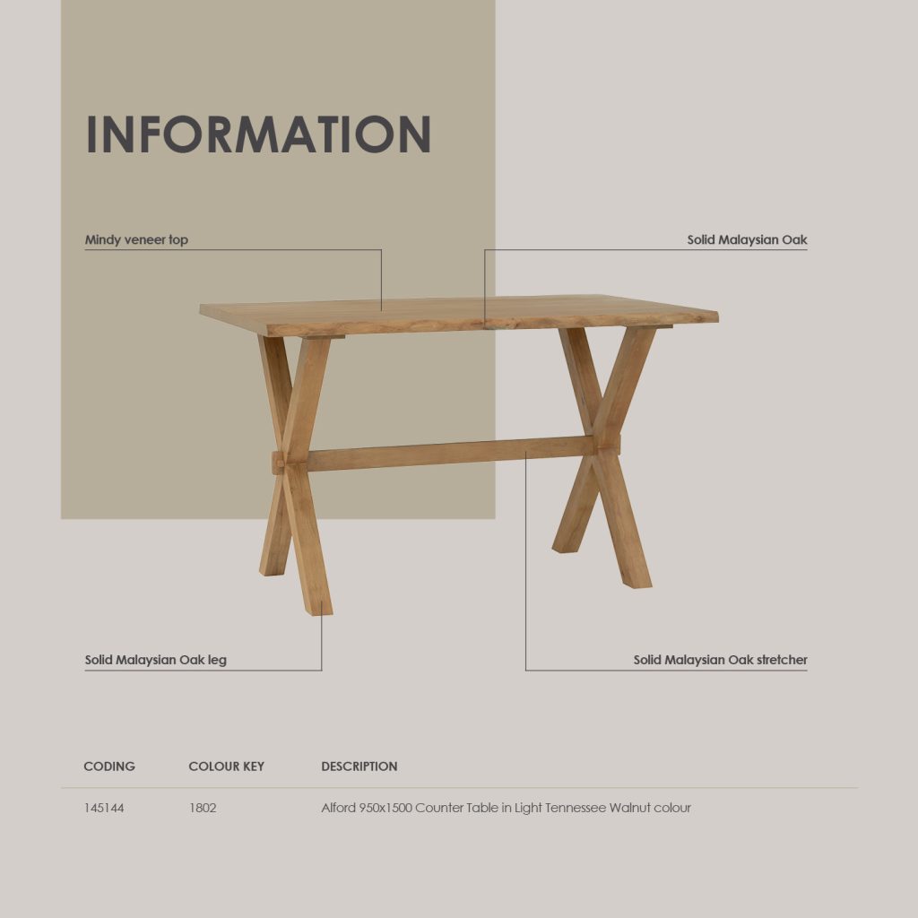 BRADFORD 150x95cm Counter Table-Light Walnut