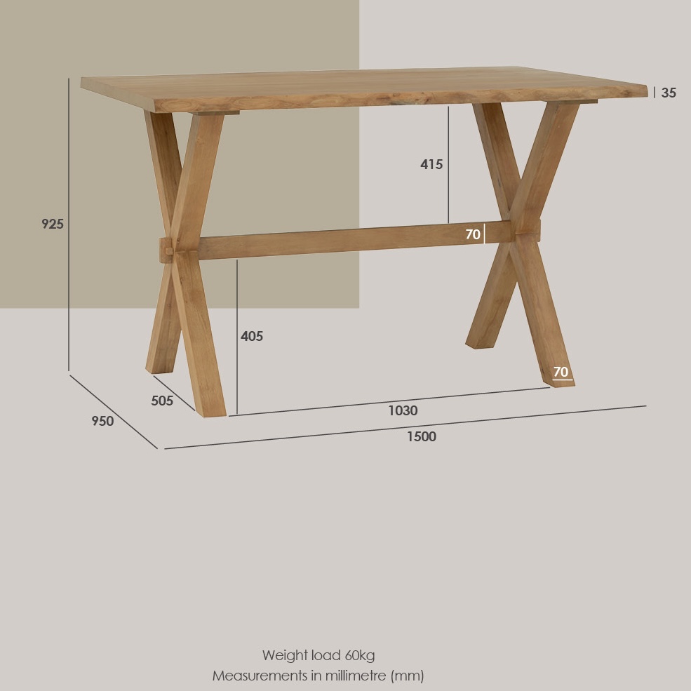 - 35mm Thicker table top with live edge profile