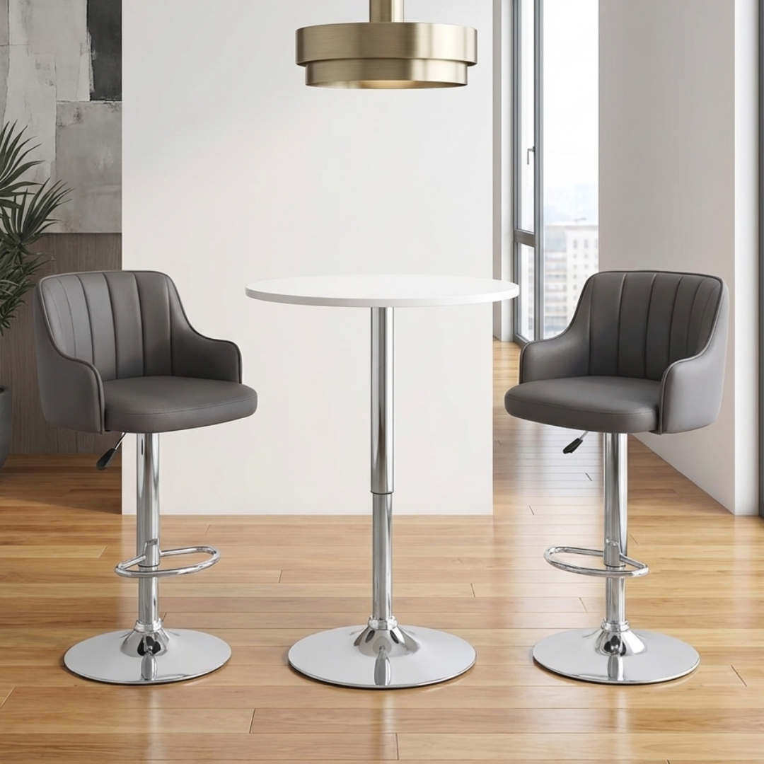 Elevate your home bar or kitchen nook with the BURANO 2-Seater Bar Table Set. Designed for ultimate flexibility, both the table and bar chairs are height-adjustable, allowing you to customize your seating experience. The chairs feature premium PU leather seats for a luxurious feel and easy cleaning, while the stainless steel footrests provide durable support and a touch of modern shine. Perfect for morning coffees or evening drinks in style.
